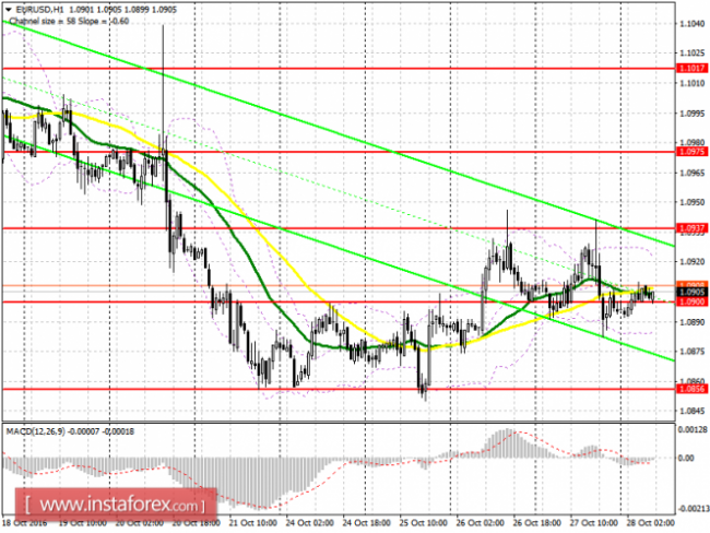 Падение евро во второй половине дня привело к формированию нового нисходящего ценового канала, нижняя граница которого расположилась в области минимума вчерашнего дня – 1.0882, тогда как верхняя граница проходит у максимума этого же дня – 1.0941.